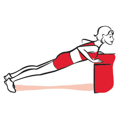 Сядьте на край стула или скамьи. Руки поставьте за вами и ухватитесь за край стула, пальцы смотрят вперед. Согните ноги и поставьте их так, чтобы вес тела приходился на пятки, и соскользните со стула. Поддерживая спину прямой, на 10 счетов опускайте ягодицы вниз. В нижней точке (показано на рисунке) удержитесь на 2 секунды, затем медленно, на 10 счетов, вернитесь в стартовую позицию.
