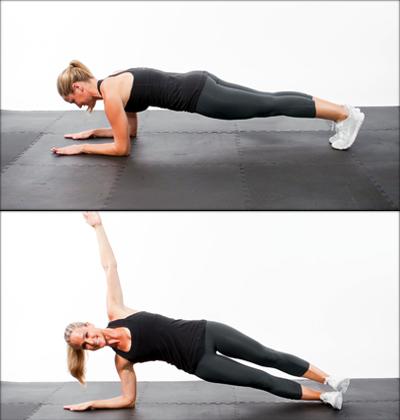В этом упражнении вы проработаете косые мышцы живота, а также почувствуете жжение в бедрах и ягодицах. Больше мышц работают – больше калорий сжигается!